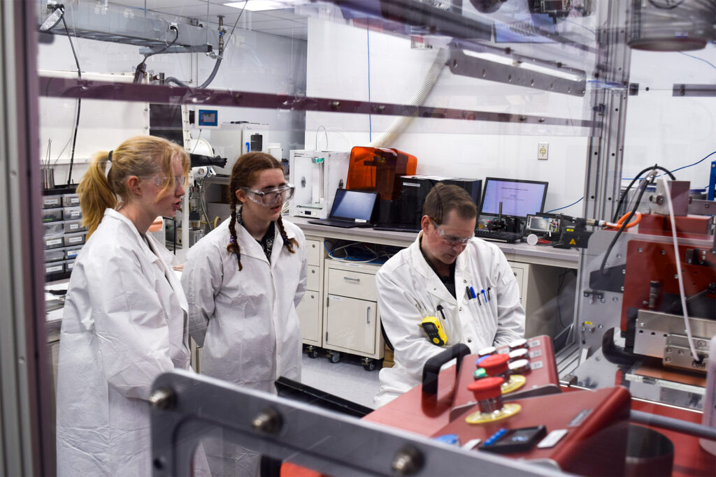 The grant formalizes a partnership between the Testbeds and FOM Technologies, Inc., the U.S. subsidiary of FOM Technologies A/S, a Danish company that makes additive manufacturing equipment such as roll-to-roll coaters. The Testbeds has several FOM instruments across scales and the company opened its U.S. offices out of the facility, where they employ UW graduates.